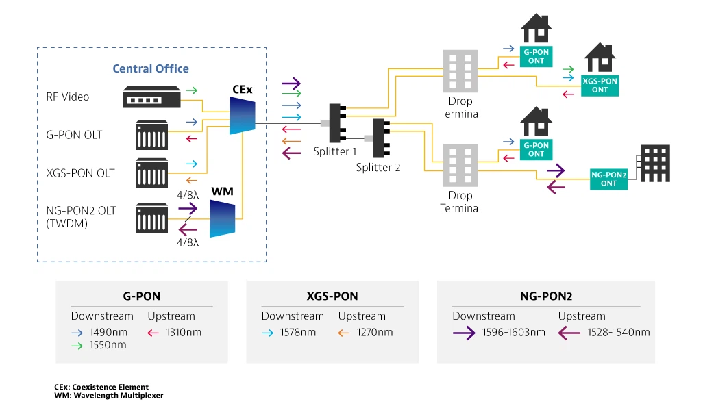 Пассивная оптическая сеть (PON) также может быть подразделяется на широкополосную пассивную оптическую сеть (BPON), гигабитную пассивную оптическую сеть (GPON) и пассивную оптическую сеть Ethernet (EPON). Среди них более распространены гигабитная пассивная оптическая сеть (GPON) и Пассивная оптическая сеть Ethernet (EPON).